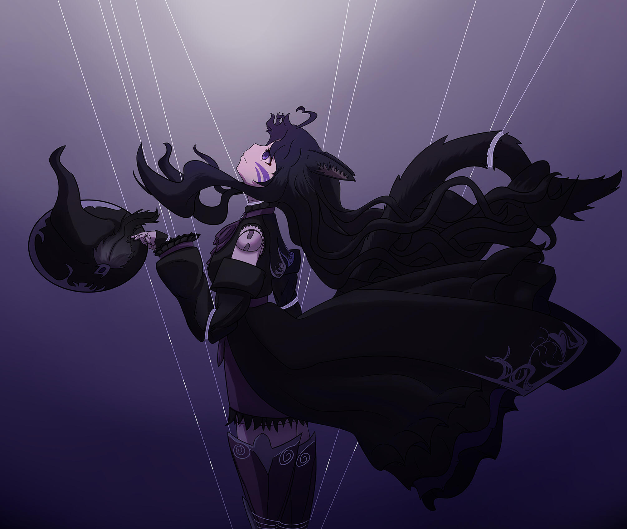 coda was a lowborn just before the contramemoria, always emotionally detached and distant, lacking much in regards to personality. she was fortunate enough to have made an acquaintance known only as Dusk, a remarkable mage, whom gave her a massive head start in learning the craft. this was doubly fortunate, as coda possessed a frail, weak heart, which prevented her from exerting herself without risk to her health. becoming a mage rather than a physically inclined fighter was the obvious solution. she excelled particularly with destructive magicks, as her soul was so inclined toward darkness as to be considered imbalanced. such a thing was becoming more common by the moon, as the war against the eidolons grew ever more grim. eventually, she set her destructive magicks upon the eidolons herself, earning her some respect from a handful of highborns, notably one by the name of fina, who coda found herself feeling a sense of warmth around that was entirely alien to her at the time. seeking to study this sensation, she spent all free time she could acquire with fina.a curious affliction of coda's came in the form of inexplicable visions. most often, they would come to her in her sleep, usually in the form of nightmares. after one of her nightmares proved to become true the following day, she grew convinced that these visions of hers were prophetic; visions of the future, warning her of traumatic events. a particular pair of visions plagued her regularly. the first, an entirely unfamiliar, large city, with tall buildings filled with people who only wore the same black or white robes with plain masks, and skies lit up by falling stars, as chaos consumed all. in the dream, she was a mage bearing dual swords, combating a large beast with hungering mouths and gnashing teeth lining its long sides. it always ends the same: a building starts to collapse, and she uses earth magicks to prevent its fall while civilians escape, and then the beast stabs her through the chest, causing the building to fall and crush her, prompting her to wake up. the second dream consisted of the world being cleft into pieces by an unknowable potent wave of darkness.when coda had a vision of the eidolons threatening to destroy fina's home, she took it upon herself to attempt to put a permanent end to this war, filled with determination to protect her idol. igeyorhm, a fellow mage under the same house as fina, guided coda to the conception of the memoria crystal. however, not long thereafter, the condition of her already weak heart had worsened, rendering her bedridden and unable to utilize this new method of eidolon destruction.one fateful evening, she informed igeyorhm of the vision she had of an eidolon destroying this place. igeyorhm inquired further, asking what other sorts of prophetic visions coda may have had. after she elaborated, igeyorhm presented her with a unique memoria crystal- one known as the heart of sabik. igeyorhm explained that the worsening condition of coda's heart may be because of her soul, and that being reunited with her soul's heart may yet save her. igeyorhm explained something revolutionary to coda, describing the true nature of the star, and the reason for the ceaseless war with the eidolons. she told her that coda's weak heart was because of a condition suffered by the one whom she is a shard of, known as lilith. confused but fascinated, coda emphatically agreed, and the heart of sabik was embedded in her chest, imbuing itself into her heart. the process left her unconscious, experiencing yet more strange visions of that unfamiliar city. what she saw did not explain everything, but she considered herself enlightened.unfortunately, by the time she awoke from her visions, the prediction she had of the eidolon that would destroy fina's home had come true. igeyorhm managed to bring both coda and fina to safety in the meantime, but the damage was done, and the entire town was left in shambles. however, coda was filled with a sense of determination the likes of which she had never known. she recalled who she was: lilith, the executioner. now going by this name, her manic ravings seemed to frighten her beloved fina, but it did not matter. she recalls that someone from lilith's- her- visions bore an identical soul color as fina's, and concluded that the reason fina made her feel this warmth was also due to a latent memory of lilith's. she took it upon herself to further igeyorhm's agenda, being misled about the consequences. per her suggestion, lilith proudly declared that she was rejuvenated by imbuing herself with a memoria crystal, and that other memoriates could draw upon the crystals' aether to enhance themselves. this saw the spread of darkness intensify greatly, as men began transforming into beasts from indulging upon the darkness.lilith now believed the only way to restore peace to not only this star, but all of the reflections, would be to further the ascians' agenda and see through the rejoining of all shards. after helping golbez destroy the watcher to bring about the thirteenth's rejoining, that recurring vision of hers finally came to fruition. the thirteenth was irreparably consumed by darkness when the dark-aspected aether erupting from the moon had nowhere to go. the ascians dubbed the thirteenth a lost cause and abandoned her there entirely as she transformed into a beast, as had the rest of the star's inhabitants.